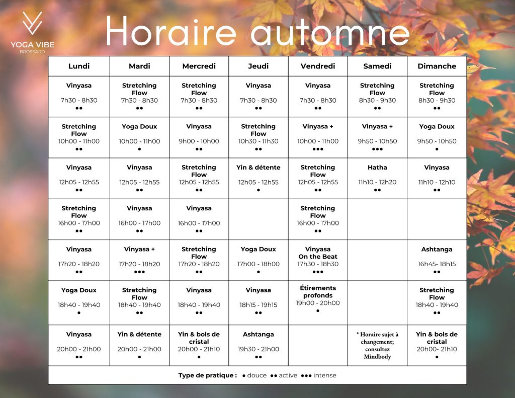 HORAIRE D’AUTOMNE