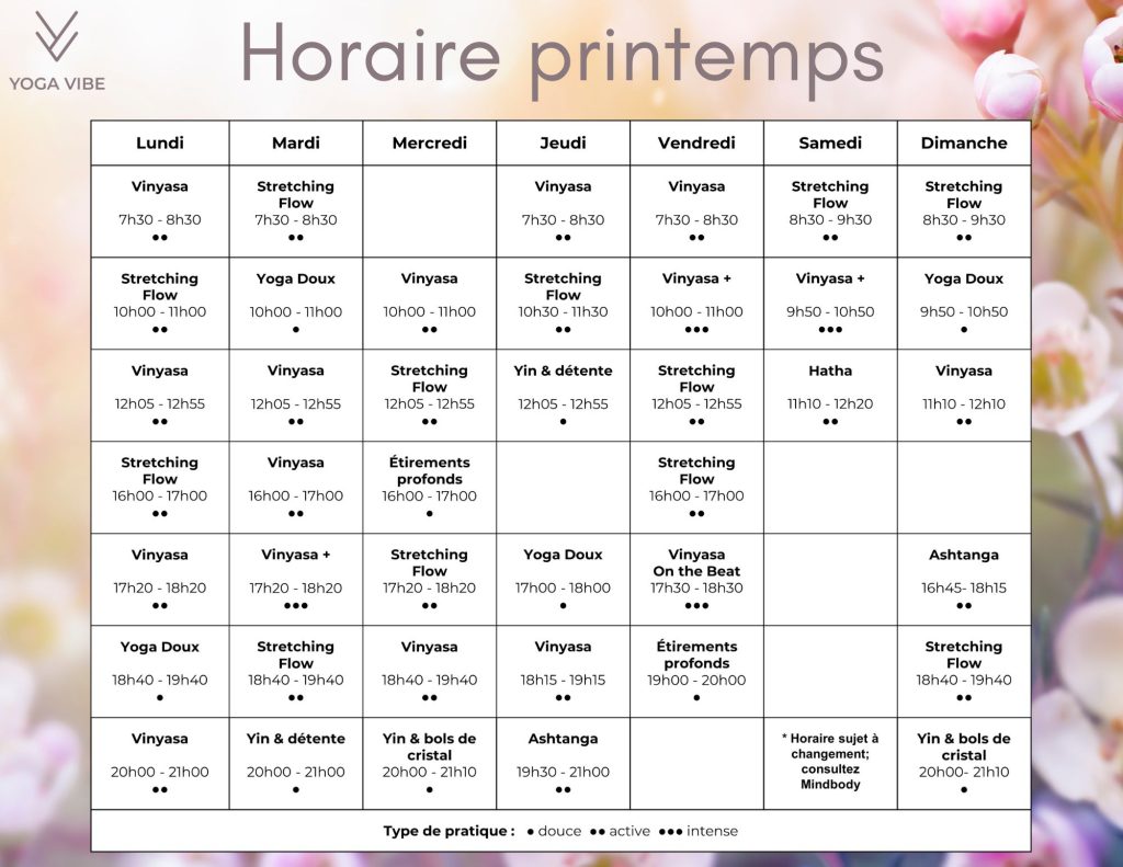 HORAIRE – PRINTEMPS